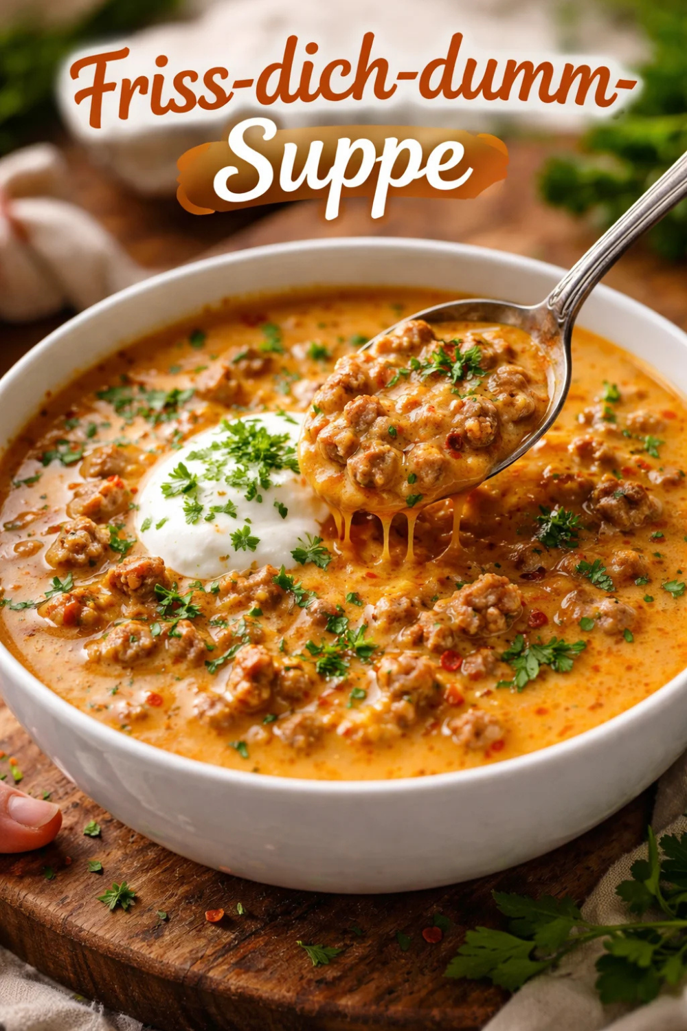 Hackfleisch-Sahne-Suppe mit Schmelzkäse