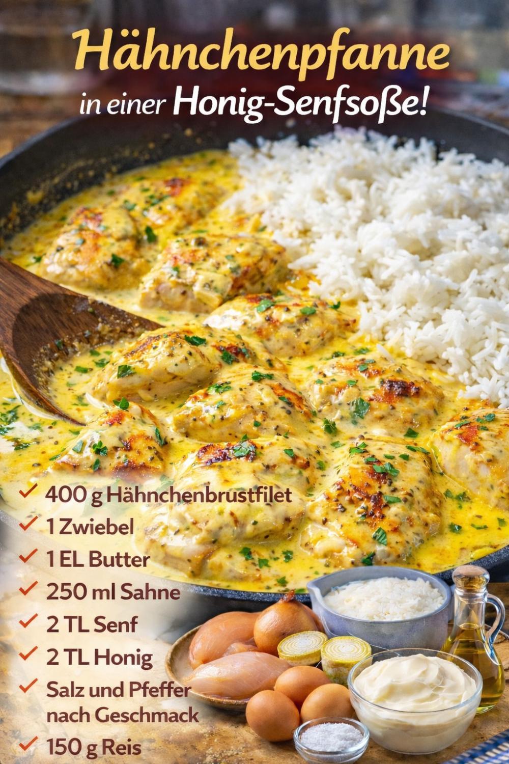Hähnchen in Honig-Senf-Rahm – würziges Pfannengericht
